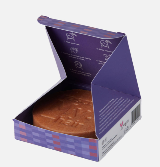 Rinse hair with water and gently glide your shampoo bar over your hair a few times to create a lather and to distribute product evenly, or rub the bar between your hands to create a lather. Gently massage it into the hair and scalp before rinsing.